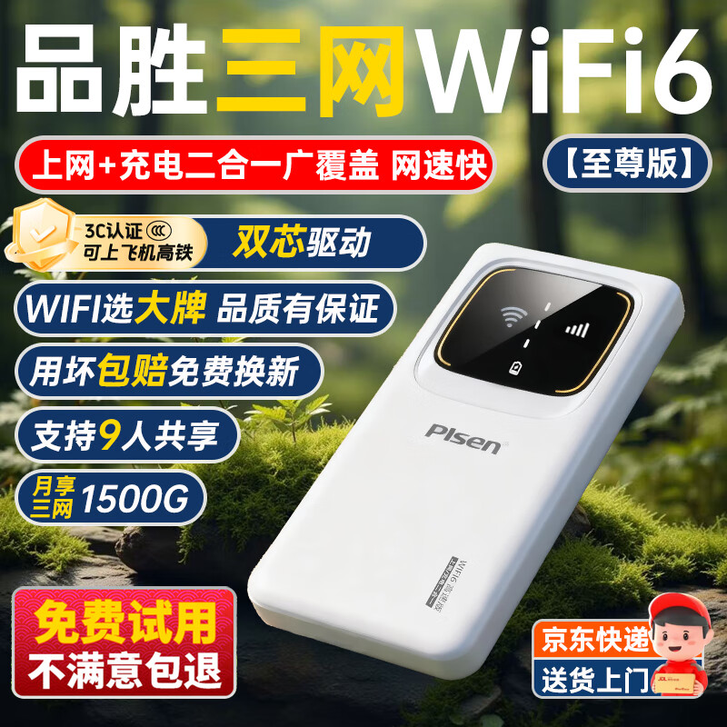 品胜(PISEN)充电宝上网二合一wifi【3C认证可上飞机】免插卡随身无线车载4G路由器全国通用上网卡2025款YM25 至尊版【wifi6+充电宝】真wifi6信号翻倍 1500G