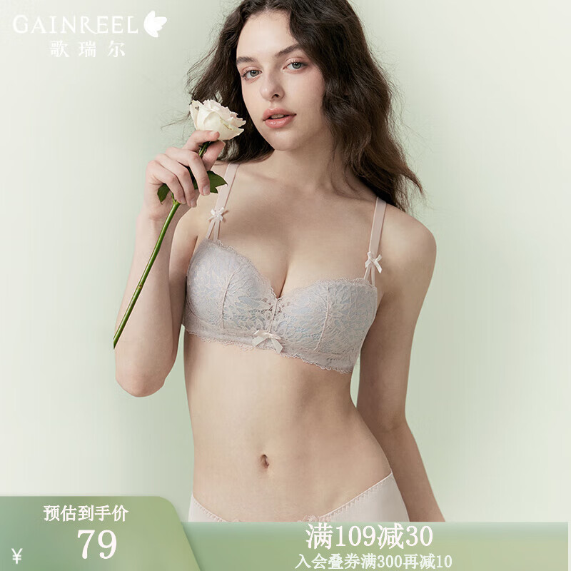 Gainreel歌瑞尔亲肤柔软蕾丝聚拢防下垂内衣女显大透气无钢圈软支撑侧收文胸罩 豆沙色 220624A 80B