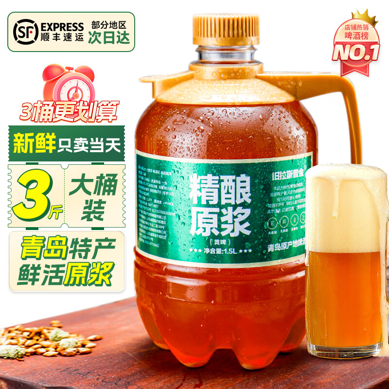 旧拉斯普金青岛特产原浆鲜啤酒精酿鲜啤扎啤酒 生啤鲜酿全麦啤酒1.5L大桶装 1.5L 1桶 【拍3桶更划算】