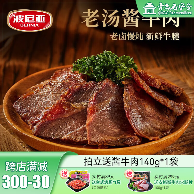 波尼亚(BERNIA)酱牛肉牛腱子140g熟食腊味卤味牛肉五香卤牛肉开袋即食牛肉下酒菜 酱牛肉140g*4袋【老汤卤制】