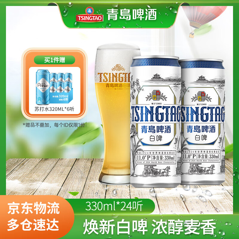 青岛啤酒 白啤全麦白啤便携灌装整箱 330mL 24罐 (20版)
