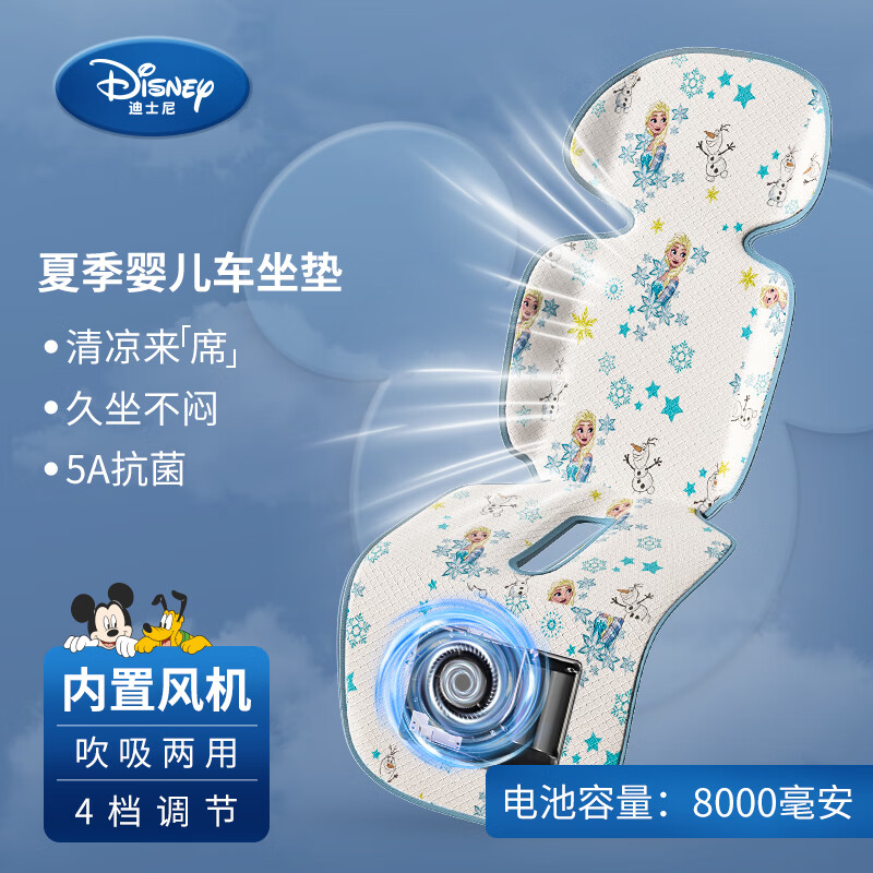 迪士尼婴儿车凉席溜娃通风坐垫春夏通用推车安全座椅风扇循环风两用吹吸