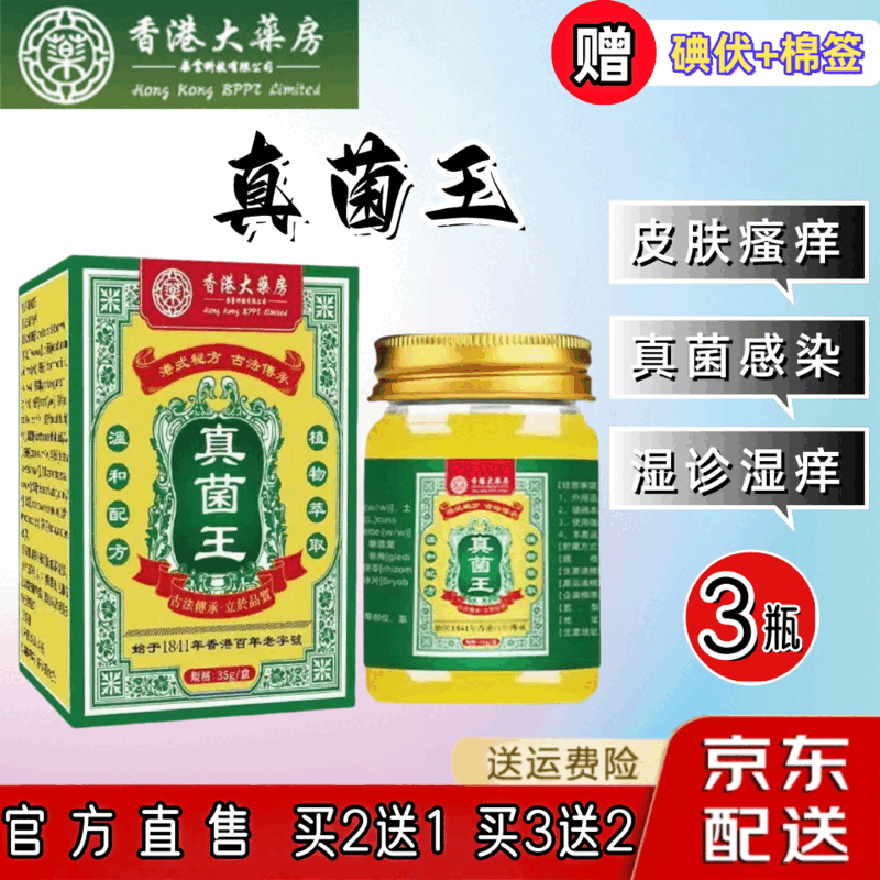 香港大药房有限公司真菌王皮肤瘙痒真菌感染私处杀菌阴囊潮湿大腿内侧肛门男女通用 3瓶基础装买2送1