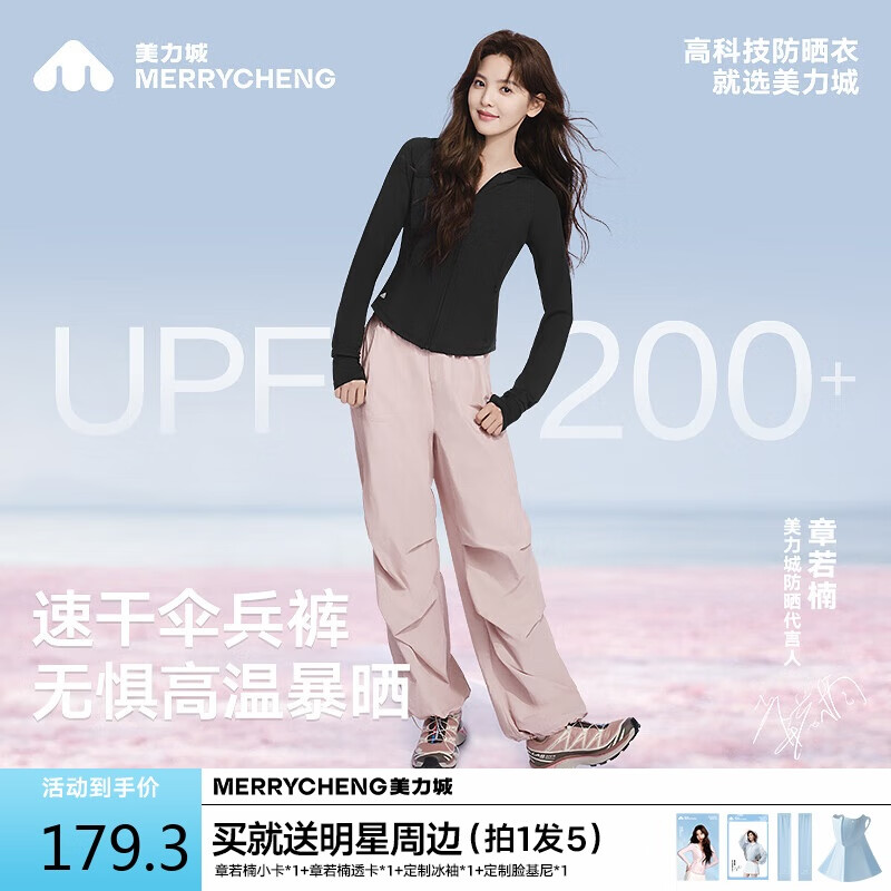 美力城【章若楠同款】户外宽松工装裤女防晒速干透气休闲伞兵裤 粉色 M