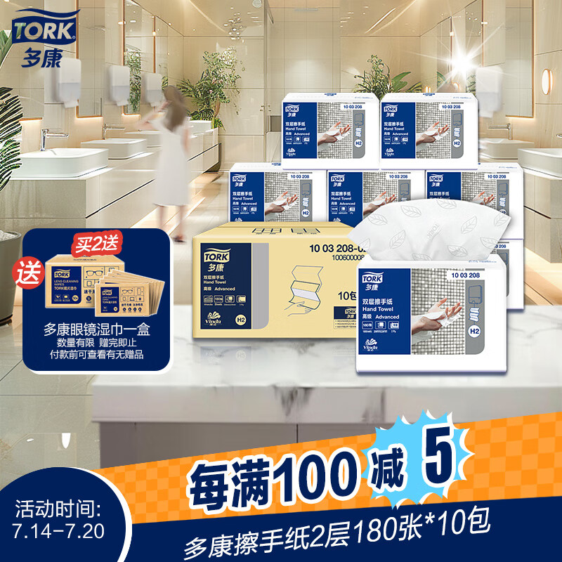 多康擦手纸双层 180抽*10包叶子压花 酒店厨房餐厅卫生间 整箱销售