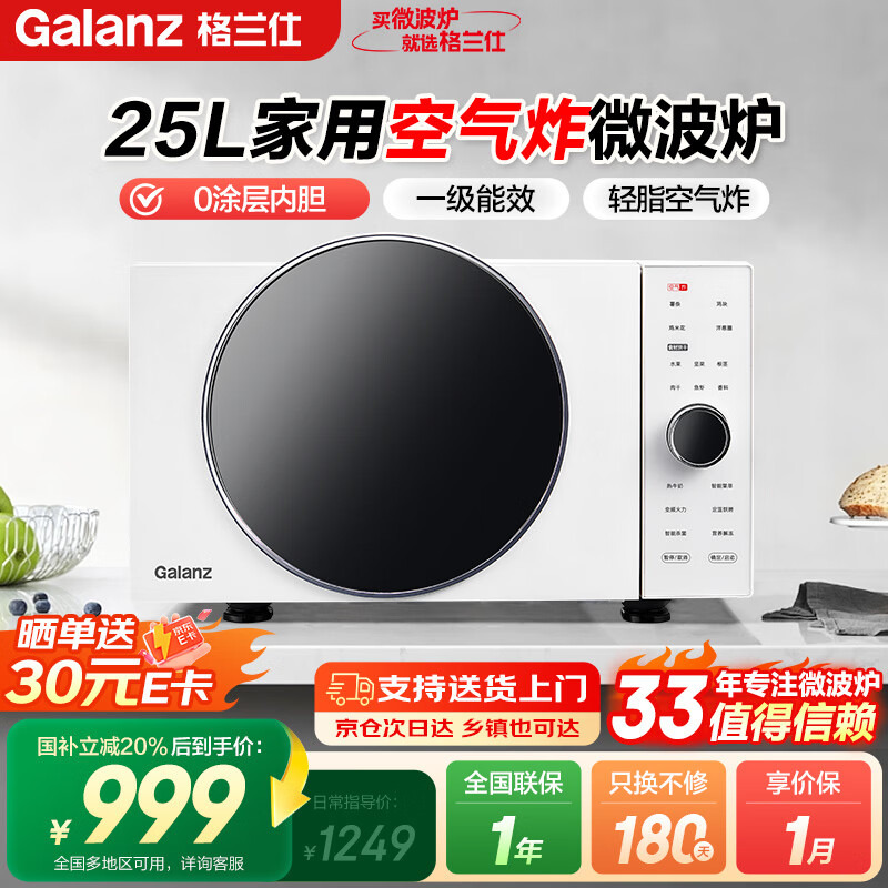 格兰仕(Galanz)【国家补贴】 微波炉 变频900W 微烤炸25升大容量 不锈钢内胆健康0涂层 家用微波炉烤箱一体机DR 【星厨爆款】健康轻脂炸 | 变频更速热