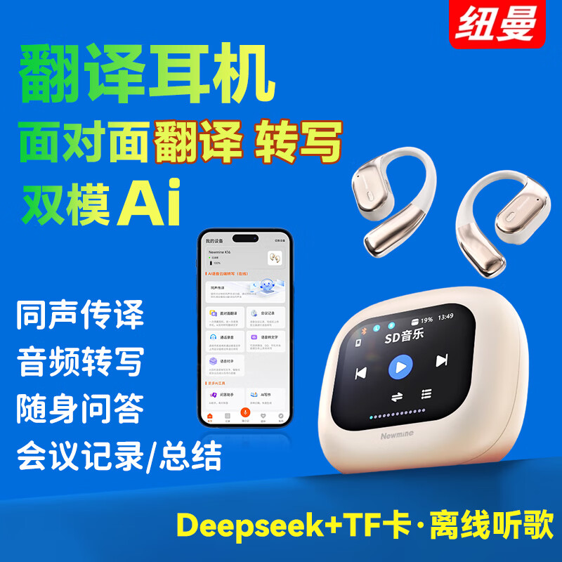 纽曼同声实时翻译转写智能AI蓝牙耳机 多国语言实时传译转文字deepseek会议记录AI写作运动跑步触控屏 纽曼K16蓝牙耳机AI版 白色