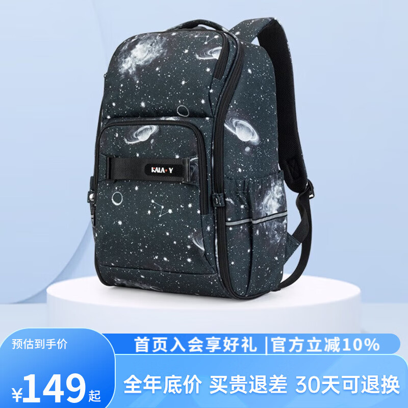 卡拉羊21/25L一体式可打开初高中生双肩包大容量书包CX5448/5098-2 B款-黑色星云