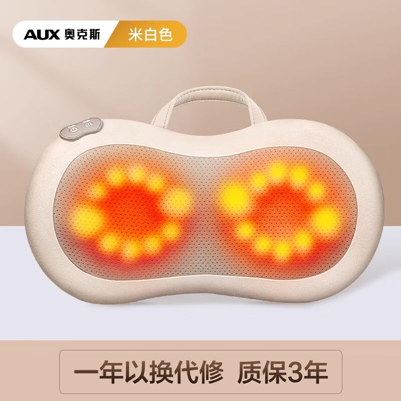 AUX奥克斯颈椎按摩器腰部背部肩膀脖子揉捏仪全身自动家用神器按摩枕头颈部肩颈背多功能按摩枕 【插电款+红光热敷+仿生按摩+米色】