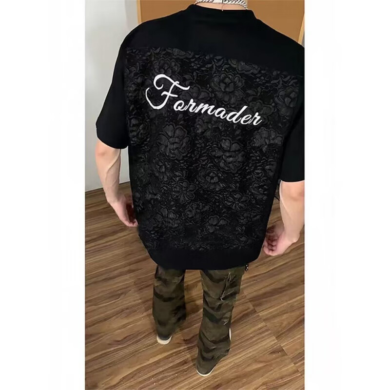 黑盒白夏季新国潮提花刺绣短袖T恤潮流ins高街设计小众五分情侣半袖衣服 黑色 M 【90-120斤】