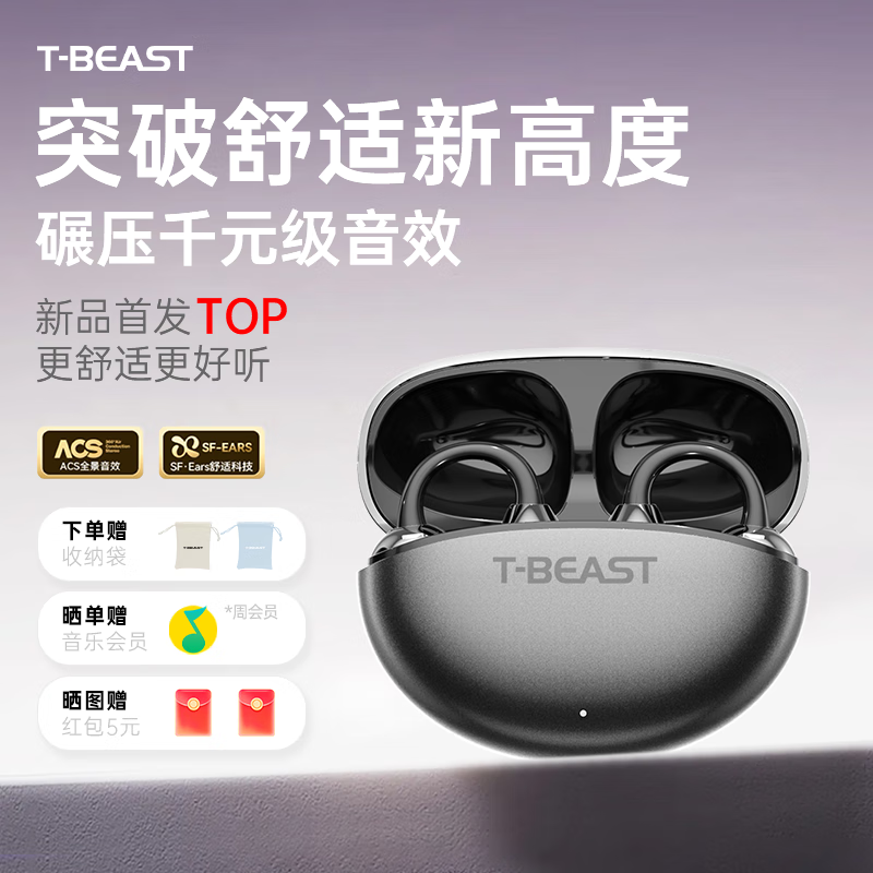 拾光兽T-BEAST Z20 开放式蓝牙耳机骨传导概念无线运动跑步长续航通话降噪【开放不漏音丨久戴无痛感】 【星曜黑】Ai实时翻译+舒服佩戴