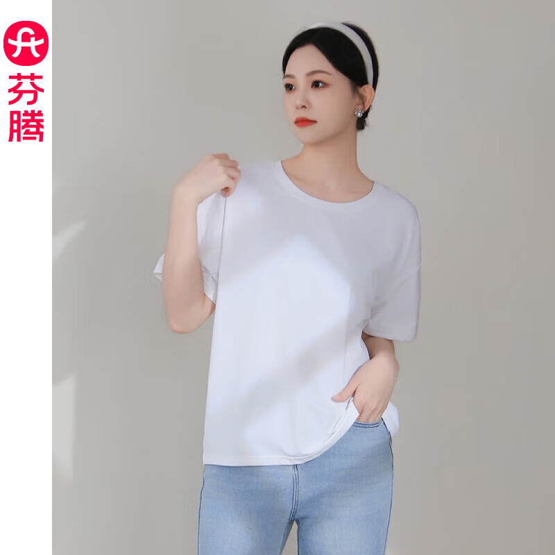 芬腾简约黑白色休闲基础款短袖T恤女夏季慵懒风宽松百搭显瘦套头上衣 白色 L 建议:110-125斤