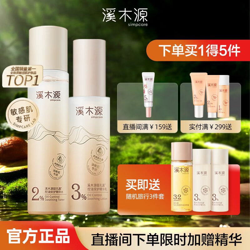 溪木源层孔菌套装洁水乳敏感肌控油补水保湿油皮混油平衡水油组合 水120ml+乳60ml