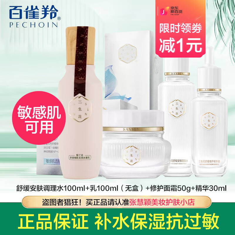三生花百雀羚三生花桅子花舒漾细肤柔润水乳套装女补水保湿抗过敏国产 水+乳(无盒)+精华+高保湿面霜