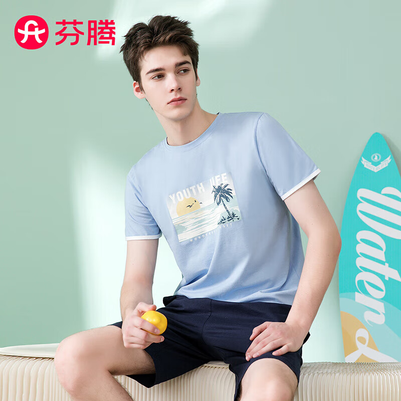 【补贴54.9包邮】芬腾 男士圆领家居服套装 冰兰-男款 XL