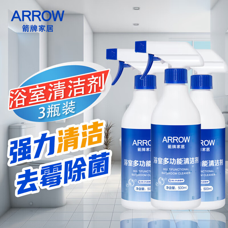 箭牌浴室清洁剂强力去污神器台盆地面玻璃马桶去垢除菌剂瓷砖清洁剂 【茉莉花香】浴室专用-500ml*3瓶