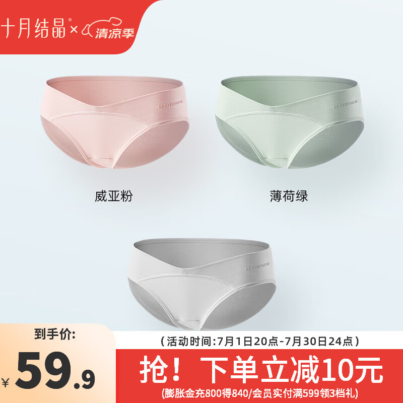 十月结晶孕妇内裤女怀孕早期中晚期月子专用低腰托腹棉抑菌 【威亚粉+薄荷绿+冷淡灰】 3条装 XXL
