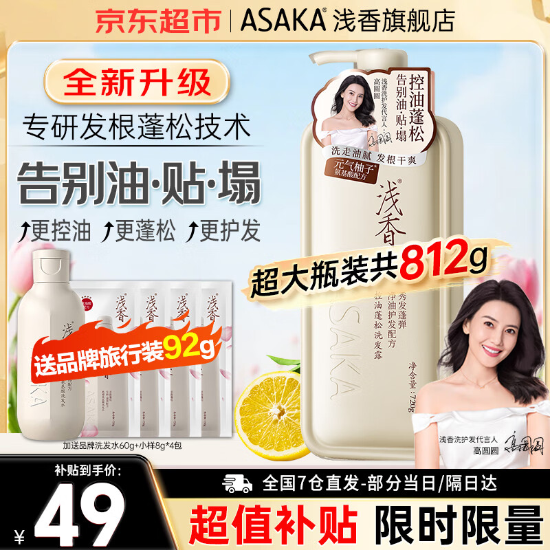 浅香(ASAKA)洗发水元气柚子氨基酸控油蓬松洗发露去屑顺滑柔亮芳香洗头膏男女 控油蓬松洗发水720g【3D蓬松】 【全新升级】