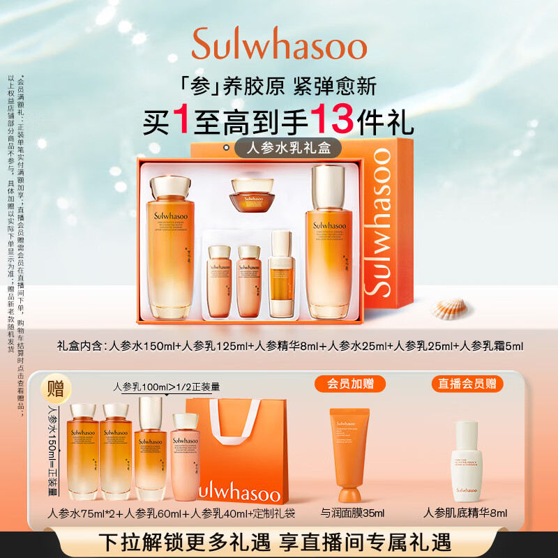 雪花秀人参护肤水乳礼盒保湿紧致精华水150ml+乳液125ml 直播间享立减