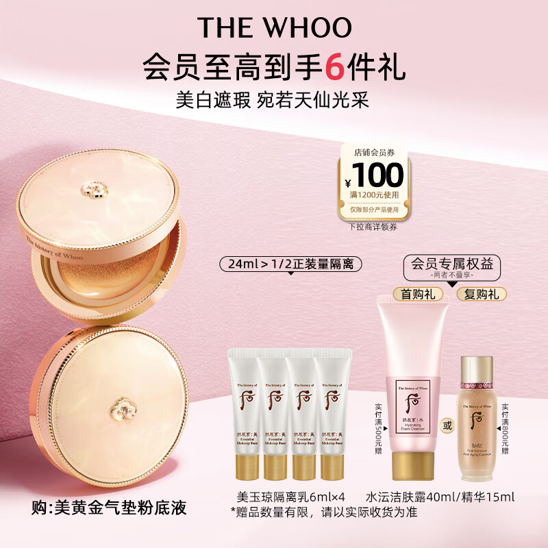 后Whoo黄金气垫粉底液#21 SPF50+/PA+++防晒遮瑕持妆生日礼物
