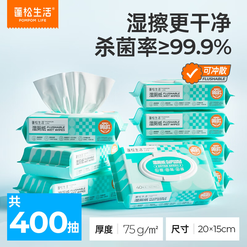 【补贴价35.9】蓬松生活 可冲散湿厕纸 40抽*10包