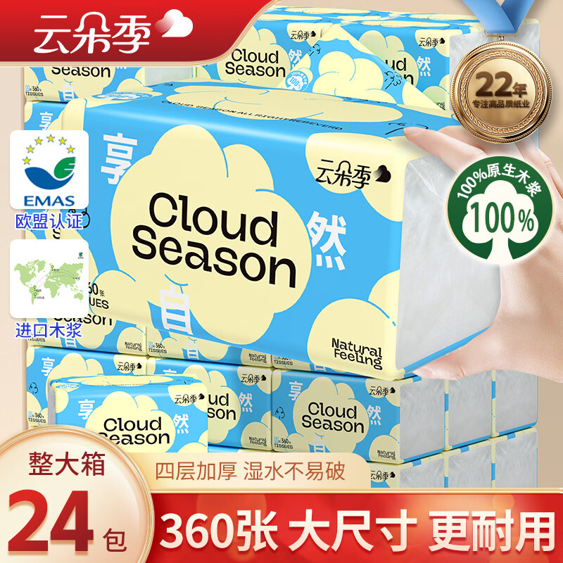 【到手23.9】云朵季 抽纸 4层 360张*24包