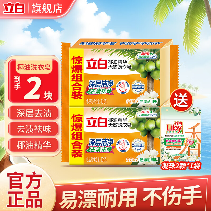 立白 洗衣皂透明皂椰油皂 2块共222g】去渍皂+凝珠