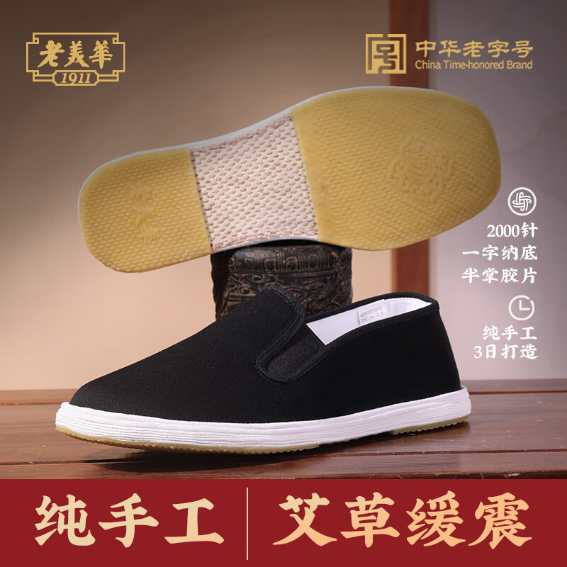 老美华常年款老北京鞋男款纯手工千层底中老年人高端缓震 黑色 42