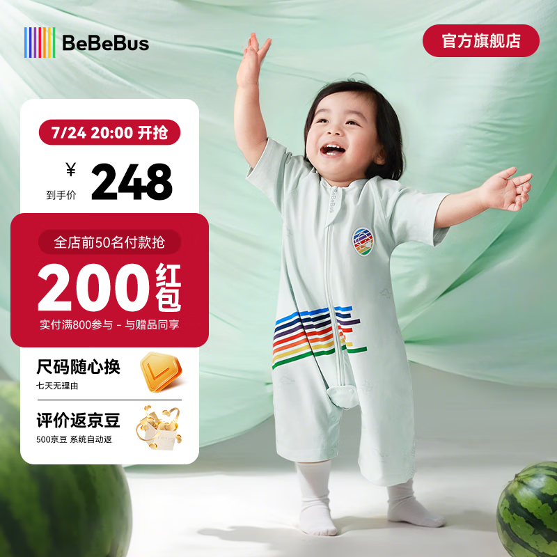 bebebus小凉风睡袋夏季宝宝婴儿薄款儿童分腿睡袋短袖吸汗透气睡袋 M【80码 推荐身高80-90cm】