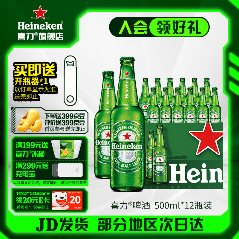 喜力啤酒 经典啤酒 整箱装 全麦酿造 原麦汁浓度≥11.4°P苏超 500mL 12瓶