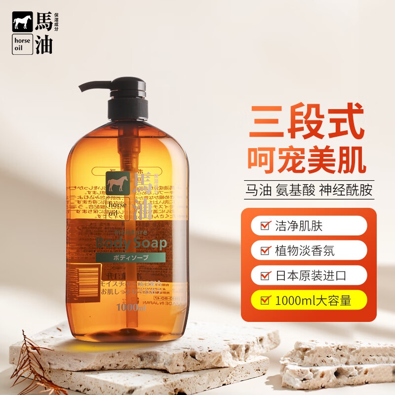 咖思美日本原装进口马油沐浴露液1000ml熊野油脂大容量滋润保湿持久留香