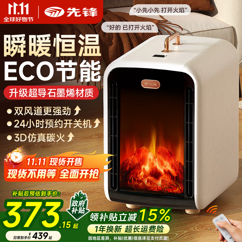 夏普取暖器暖风机家用立式节能速热办公室摇头石墨烯电暖器加湿遥控带离子群净化取暖器塔式电暖气 HX-FR225B-B【语音+离子群+雾化火焰】