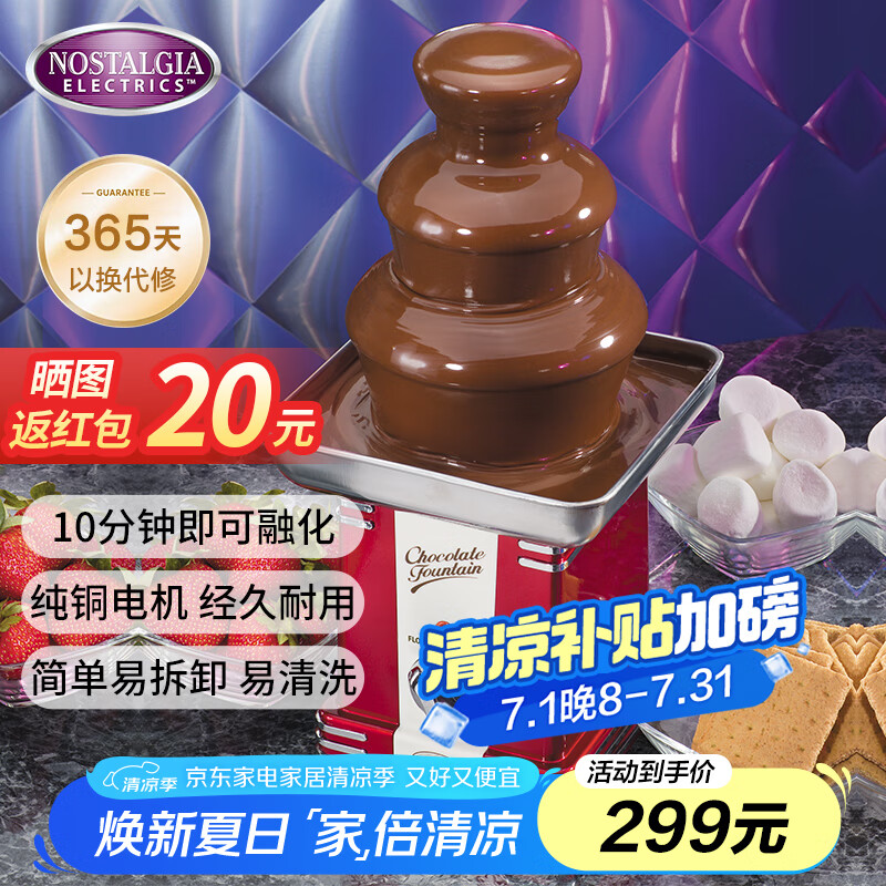 NOSTALGIA ELECTRICS家用商用巧克力机瀑布机喷泉机三层朱古力喷淋塔自助餐朱古力火锅熔浆机机
