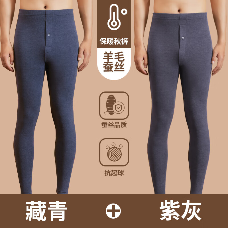 雪中飞保暖裤男款秋冬季内穿打底裤2025年新款无痕高弹棉裤秋裤 XZFZX-1765【藏青+紫灰】2条实惠装 2XL 推荐【120-150斤】