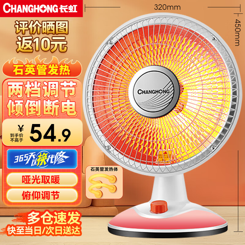 长虹(CHANGHONG)取暖器/小太阳/电暖器/电暖气/取暖电器/电热扇/电暖炉小型/烤火炉/快热炉 速热可摇头 台地两用【广角摇头+网罩360mm】 1