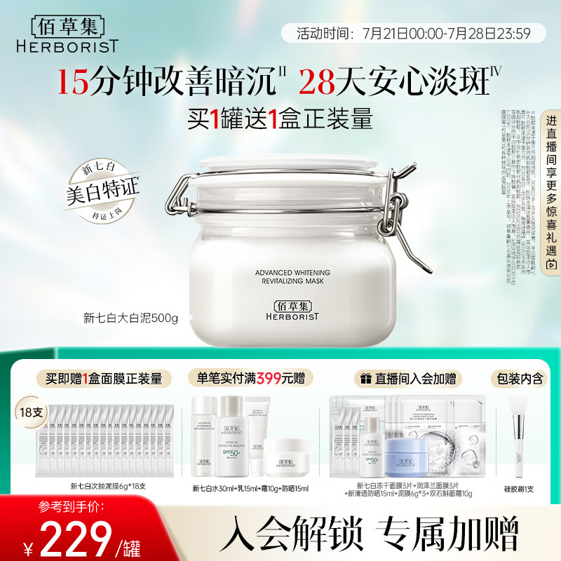 佰草集新七白美白清洁泥膜淡斑大白泥面膜500g【升级版】 涂抹式补水