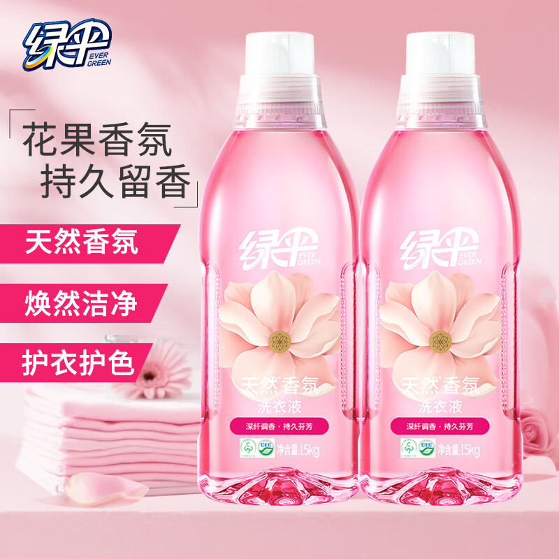 绿伞天然香氛洗衣液 持久留香柔顺护衣护色亮白增艳 1.5kg*2瓶