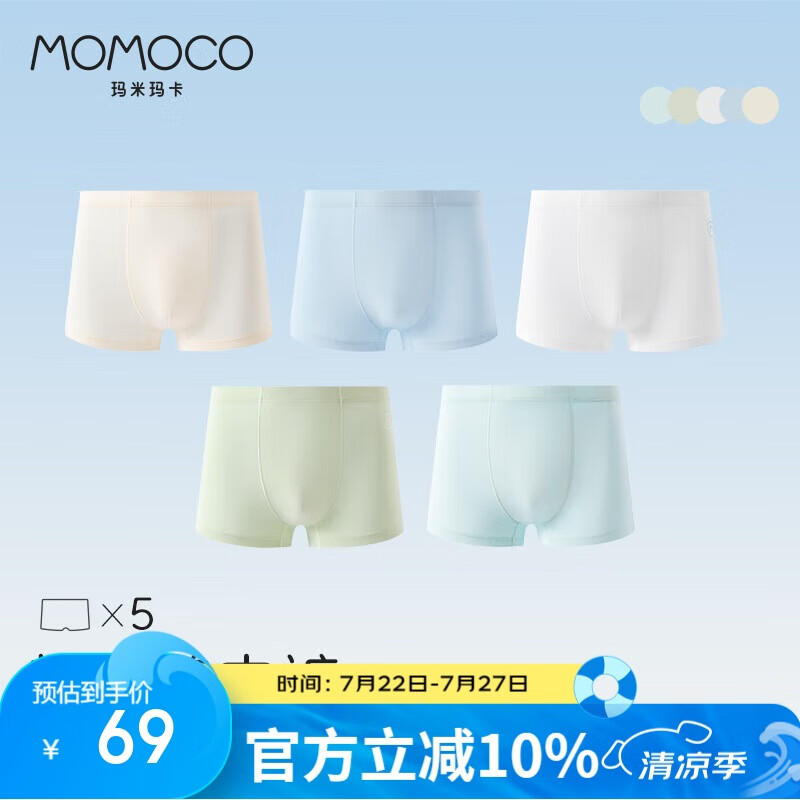 MOMOCO玛米玛卡【5条装】儿童内裤7A抗菌中小童2-9岁男女童内裤宝宝内裤 云舒【男宝】 5条 120