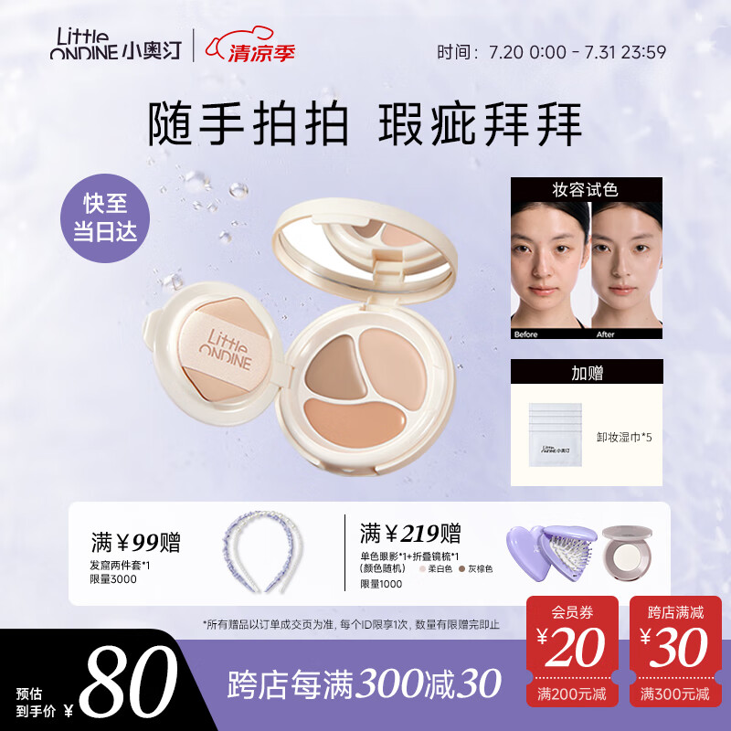 小奥汀(littleondine)气垫遮瑕膏持久滋润修容提亮遮盖泪沟黑眼圈斑点痘印02自然色3.5g