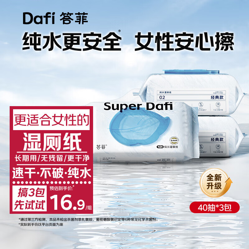 答菲湿厕纸屁屁湿巾清洁湿纸巾私处专用洁厕湿巾纸家庭装大包 【温和无刺激】 40抽*3包