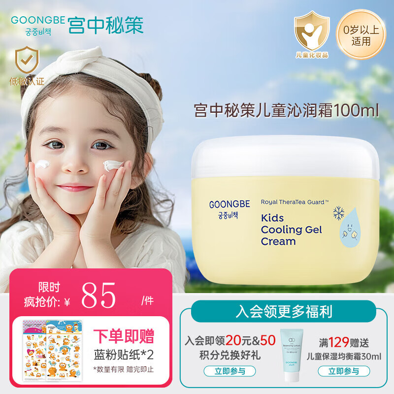 宫中秘策【儿童专用】夏日婴幼儿冰凉感保湿润肤面霜舒缓清爽沁润霜100ml