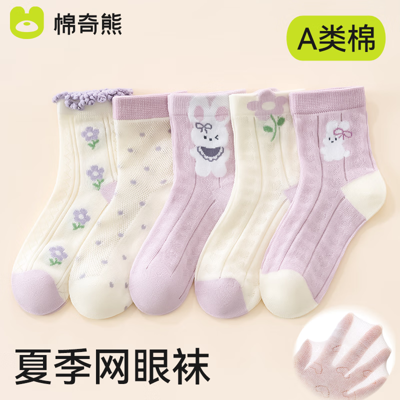 【JD旗舰店/14.9元】棉奇熊 男女童夏季抗菌纯棉/凉感桑蚕丝网眼袜 5双装