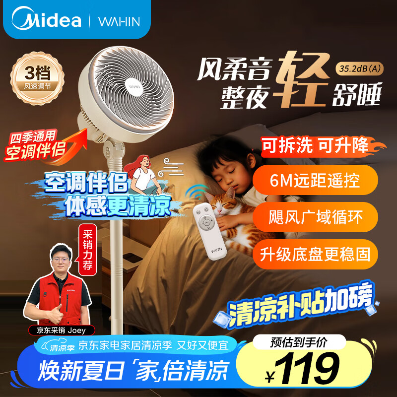 华凌美的【飓风循环】5叶空气循环扇 家用遥控电风扇轻音卧室空调扇台式桌面落地扇小型风扇WH-FGA2002