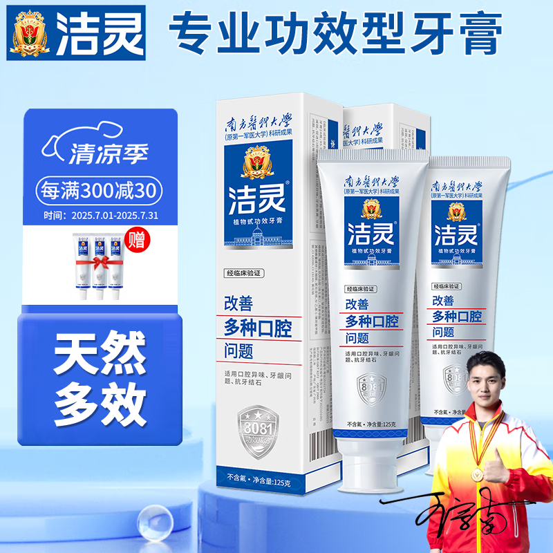 洁灵改善多种口腔问题牙膏组合 多效护理牙龈去渍清新抗敏感 冬青薄荷125g*2支