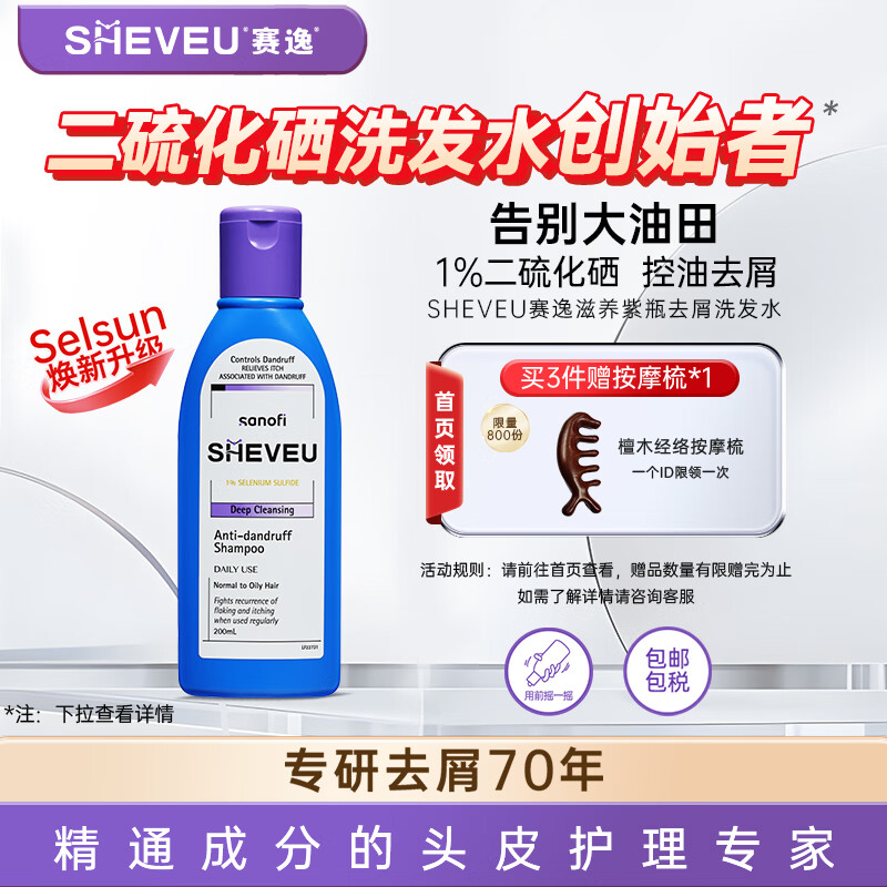 SHEVEU赛逸二硫化硒控油去屑止痒蓬松男女士洗发水紫200mlselsun洗头膏