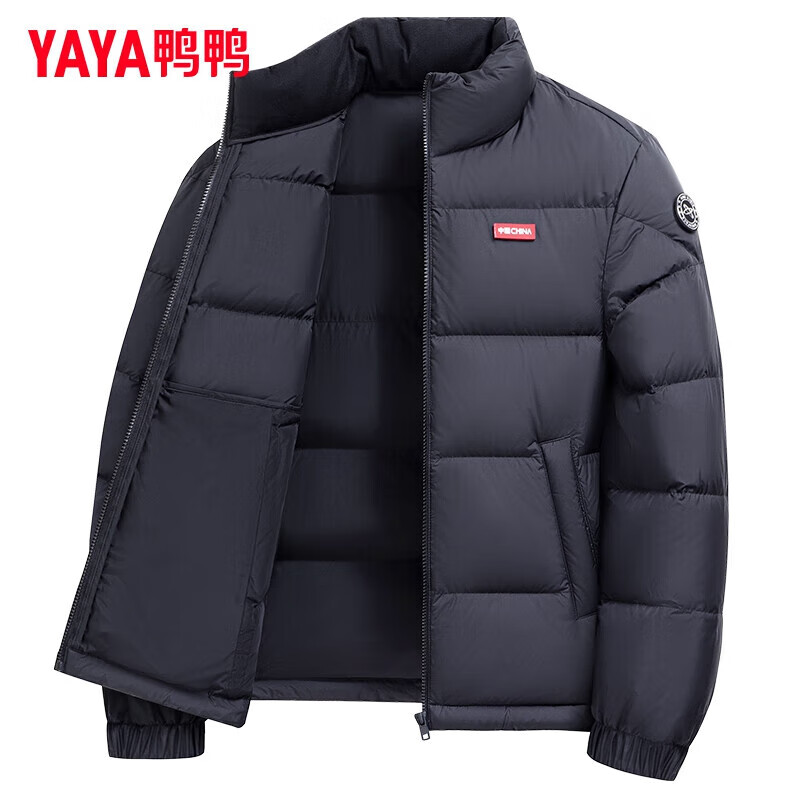 【plus159包邮】鸭鸭(YAYA)复古港风男女同款立领羽绒面包服 青光黑色